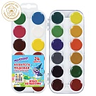 Краски акварельные ЮНЛАНДИЯ "ЮНЫЙ ВОЛШЕБНИК", медовые, 24 цвета, круглые кюветы, пластик, 192359