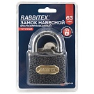 Замок навесной чугунный "Влагонепроницаемый", ширина 63 мм, полимерное покрытие, английский, 3 ключа, RABBITEX (РАББИТЕКС), 671298