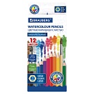 Карандаши цветные акварельные BRAUBERG 12 цветов с КИСТЬЮ, шестигранные, грифель 3 мм, натуральное дерево, 181848