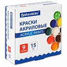 Краски акриловые для рисования и творчества 9 цветов по 15 мл, BRAUBERG, 192563