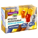 Краски акриловые МЕТАЛЛИК для рисования и творчества 6 цветов по 20 мл, BRAUBERG HOBBY, 192437