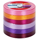 Лента атласная ширина 12 мм, набор №2 6 цветов по 23 м, BRAUBERG, 591500