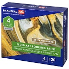 Краски акриловые для техники "Флюид Арт" (POURING PAINT), 4 цвета по 120 мл, Морские тона, BRAUBERG ART, 192240