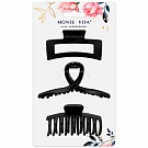 Крабы для волос НАБОР 3 шт., 8,5 см / 8,5 см / 11 см, soft-touch, чёрный, MONTE VITA (МОНТЕ ВИТА), 457032