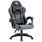 Кресло компьютерное DEFENDER "Strider", 2 подушки, ткань/экокожа, черное/серое, 64056