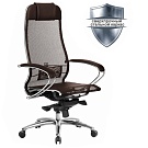 Кресло офисное МЕТТА "SAMURAI" SL-1, сверхпрочная ткань-сетка/экокожа, темно-коричневое