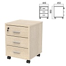 Тумба приставная "Бюджет", 400х600х740 мм, 3 ящика, полка, дуб шамони светлый, 402657-430