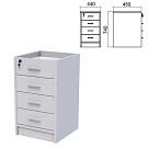 Тумба (каркас БЕЗ КРЫШКИ) приставная "Арго", 440х450х740 мм, 4 ящика, замок, серый