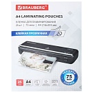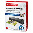 Пленки-заготовки для ламинирования с клейкой прозрачной стороной А4, КОМПЛЕКТ 25 шт., 75 мкм, BRAUBERG, 533117