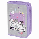 Пенал ЮНЛАНДИЯ большой, 1 отделение, 1 откидная планка, карман, полиэстер/EVA, 22х15х5 см, "Cats selfie", 273193