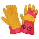 Перчатки спилковые комбинированные ДИГГЕР, размер 10,5, XL (очень большой), желтые/красные, ПЕР610